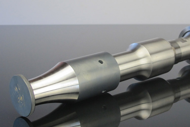 4. The ultrasonic vibrations are forwarded to the machined workpiece by a booster and a sonotrode. |